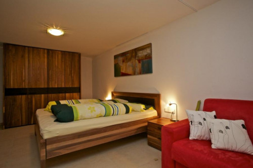 Die Ferienwohnung Gartenblick (ca. 53 m²) ist ein modern eingerichtetes Apartment im Erdgeschoss mit direktem Zugang zum hauseigenen Garten und somit ideal für Familien. Im Schlaf- und Wohnraum mit Doppelbett, Schlafcouch und Kachelofen finden bis zu 4 Personen Platz, weiters verfügt die Wohnung über eine räumlich abgetrennte Wohnküche, Badezimmer mit WC/Dusche sowie Abstellraum.