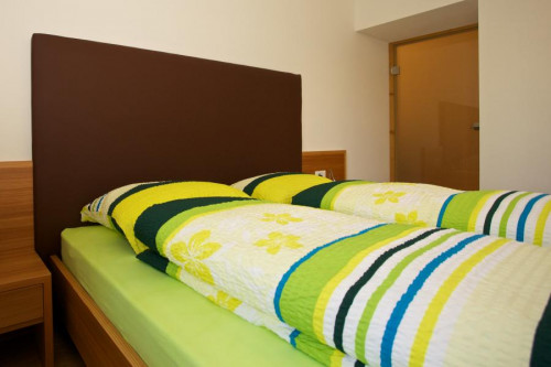 Our cosy panorama apartment Schlernblick (47 m²) is located on the first floor and is suitable for up to 4 people. The total area is divided into entrance, living room with sofa bed and kitchenette, bathroom with WC, shower and bathtub and bedroom. Unique is the mountain view people enjoy directly from the bed.